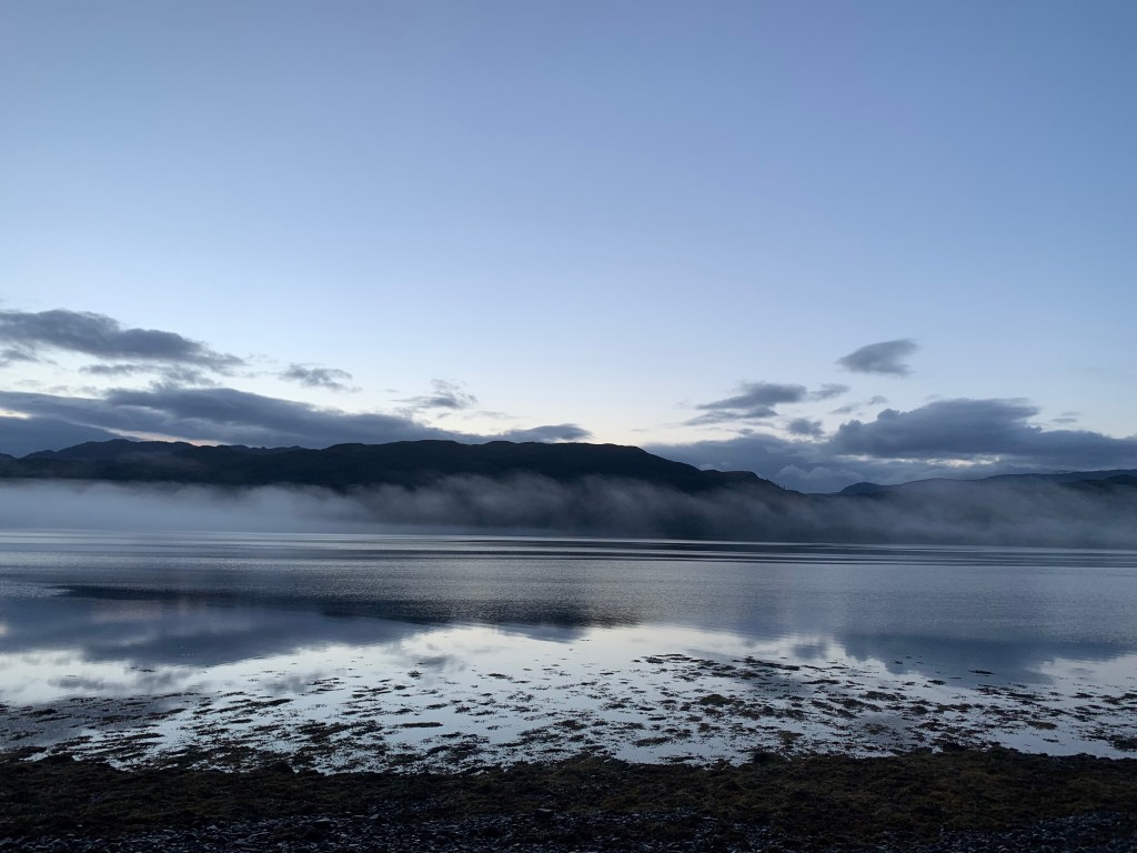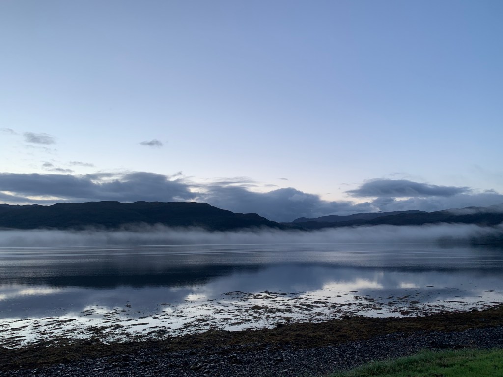 I woke up to stunning views of Loch Carron with mist hanging low above the water. Lovely start to the day.