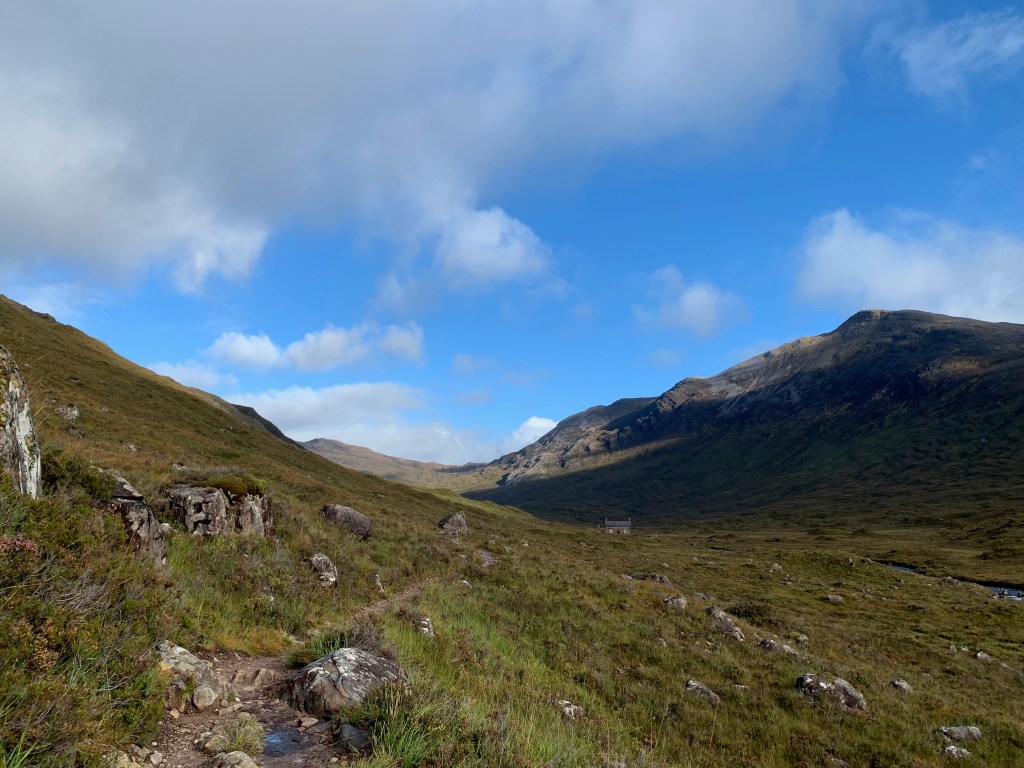 I fancied seeing some more pointy mountainy hills, so I shot over to the West Coast again, aiming towards Torridon. From a quick study of my books these hills involve more walking on scree and scrambling along a sizeable drop. Because I’m still a big scaredy cat (for now?), I opted for Maol Chean-Dearg, one of the easier walks in the area, to get a feel for it.