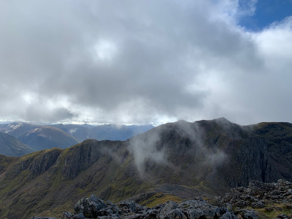 These mountains left me awestruck when I visited here as a child. So the munros here are high up my list of hills I’m excited to climb and explore. Bidean nam Bian is the highest peak in Argyll, but the peak is hidden from sight from the road, obscured by the three sisters of Glencoe – three peaks on the shoulders of Bidean nam Bian.
