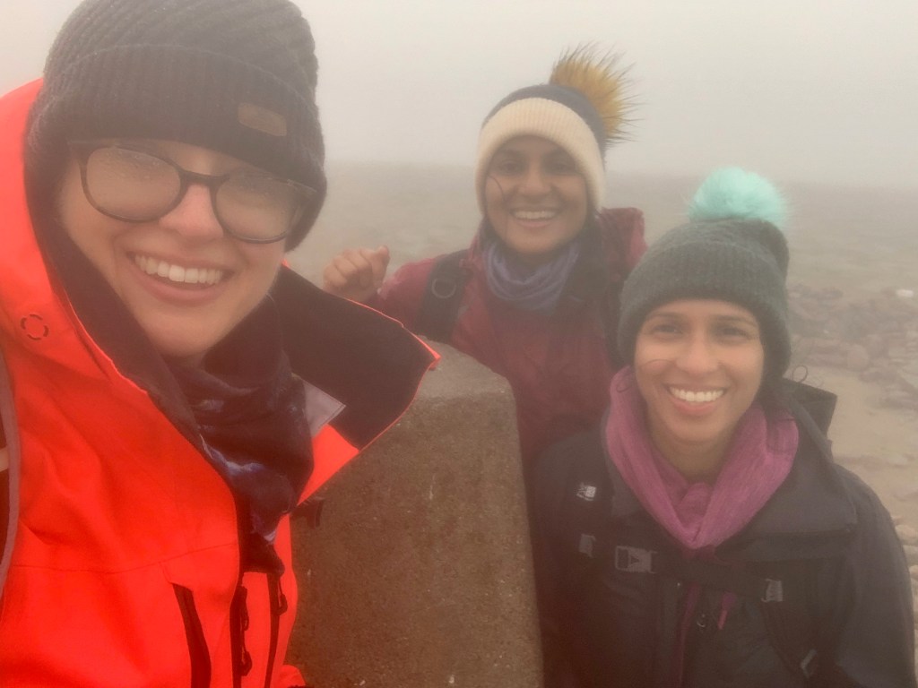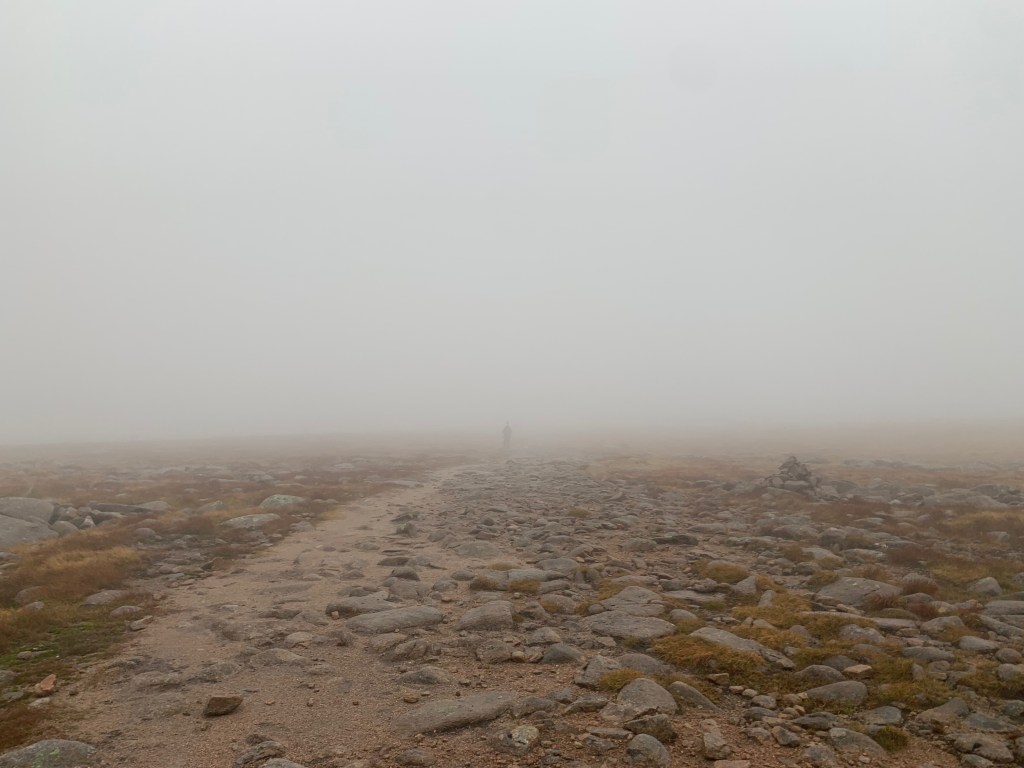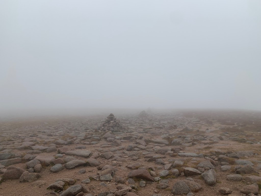 It took some stubbornness and some haribo to keep us going and get us up through the increasingly strong winds to the top. And the views at the top of Ben Macdui left everything to the imagination. Helpfully there was a marker pointing out what we *should* have been able to see in all directions to rub it in.