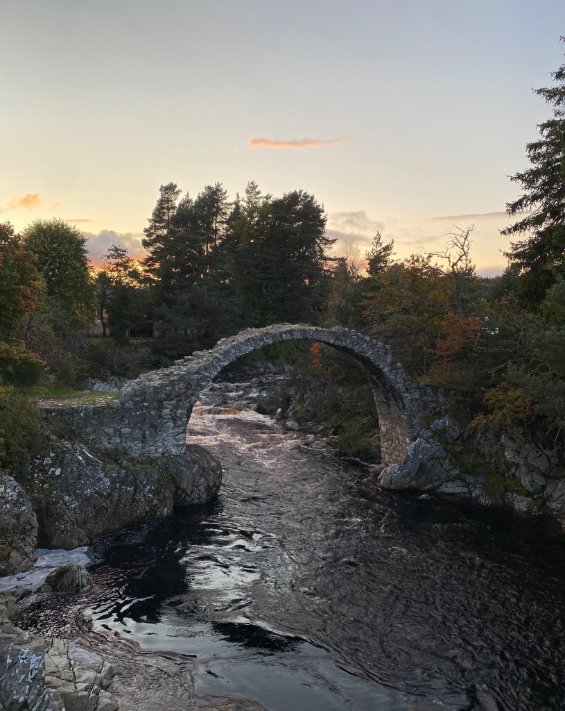 Thank goodness for the B&B – a drying room and a hot shower sorted us out before dinner. We headed up to Carrbridge to eat at the Cairn Hotel – I had a steak and craft ale pie – 10/10 highly recommend. The bridge at Carrbridge is pretty special too.