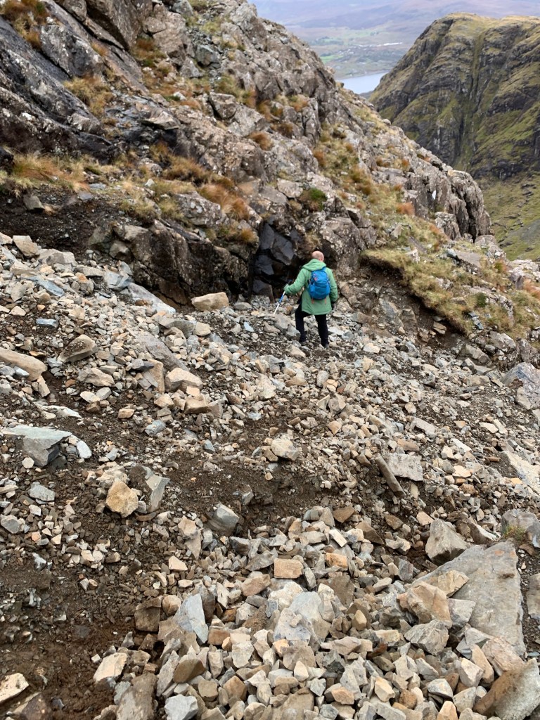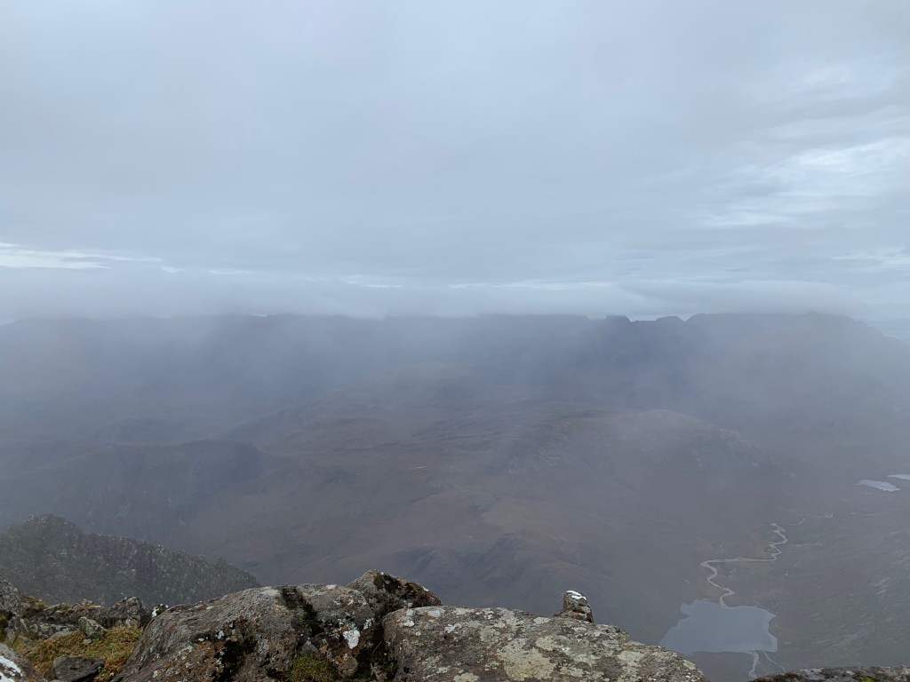 But on the way down, some views started opening up again. We stopped to take pics and chatted to another pair who were evaluating whether to head back up. We were starting to see massive views across to the West Coast and the Islands, but as one of the other guys said “that’s shite – we came to see the other side!!” hahaha. After 5 minutes it was getting really cold, which tipped the scales since heading back up would at least warm us up again.